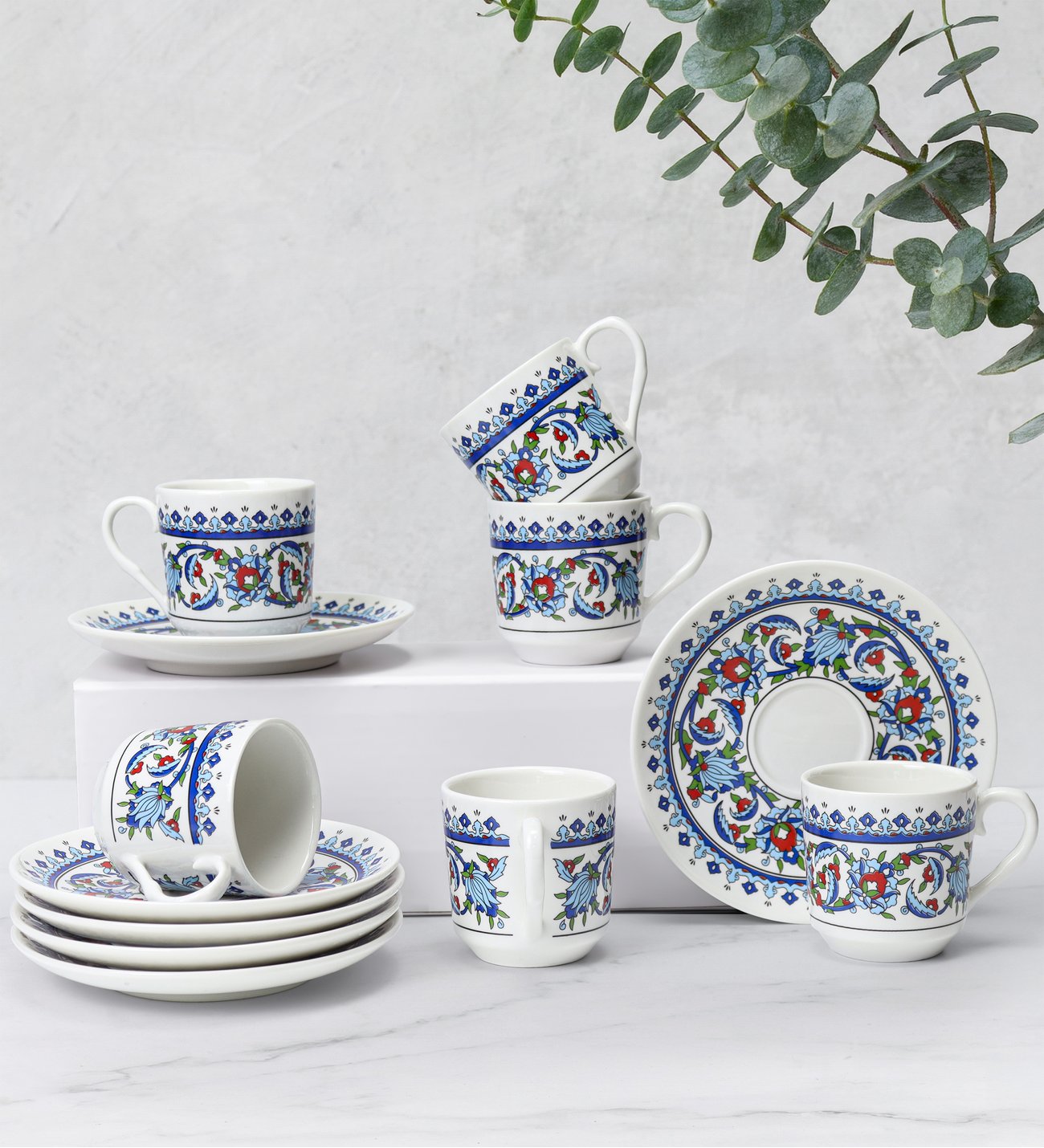 Beyaz zemin saflığı ve sadeliği simgelerken, lacivert, kobalt mavisi ve yeşil gibi renkler derinlik ve huzur hissi verir. Altın detaylar ise kahvenin misafire verilen değeri temsil eder. Renk seçimi, kahvenin “gündelik” mi yoksa “özel” bir an mı olduğuna dair mesaj taşır.